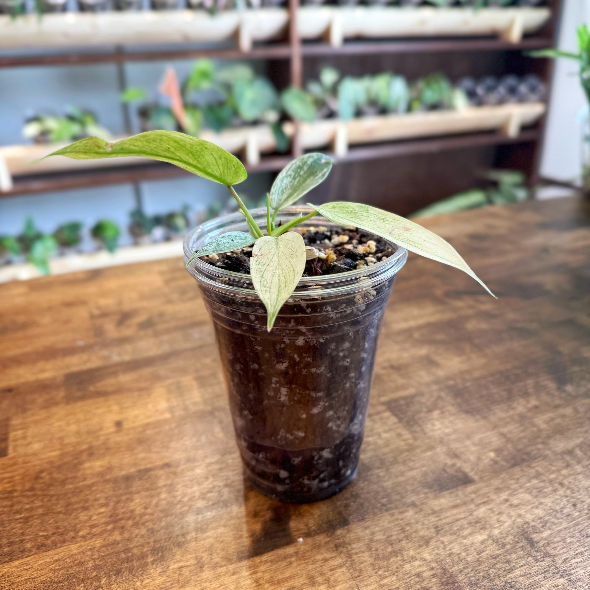 A very popular houseplant for very good reason. Philodendron "Florida Ghost" leaves start off white, then gradually turn darker as they age. A somewhat slow grower, but sizes up rapidly when allowed to climb.